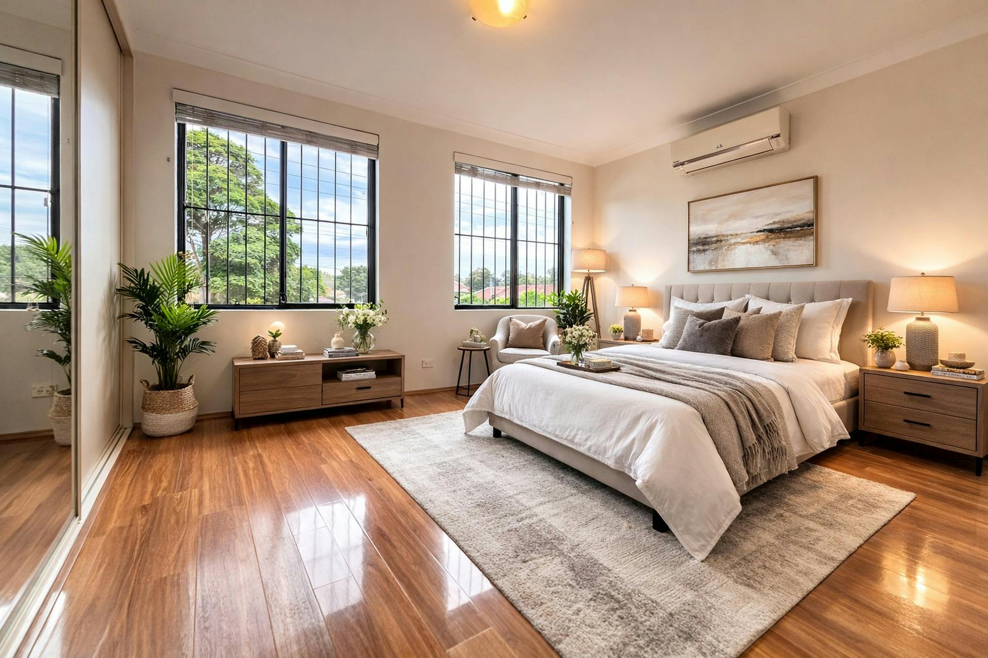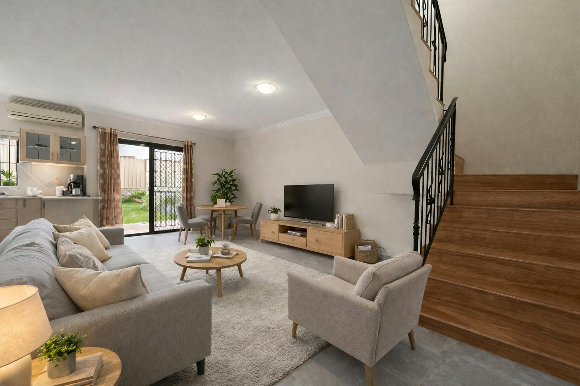 + Sunny living room with split system A/C